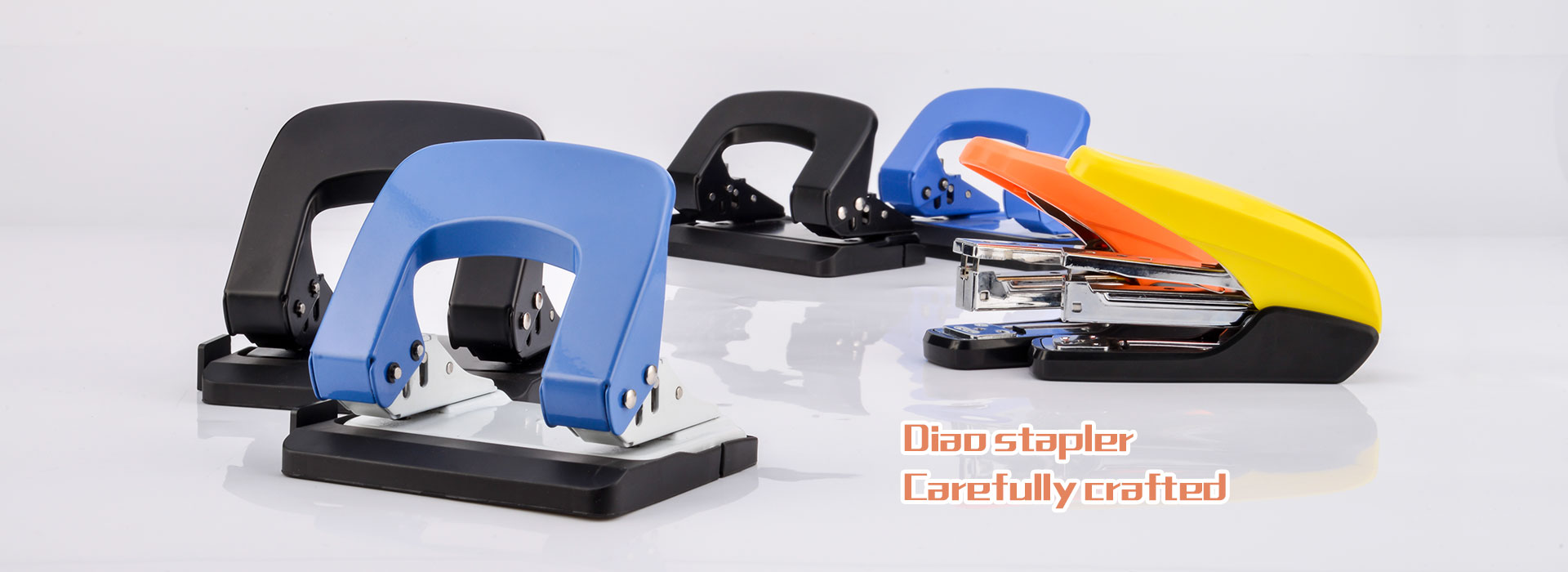 Specializes in the production brands of "DIAO" and "TACKERS" staplers, punches,staple removers and other office stationery products. With exquisite appearance, various styles, novel structures, and stable quality, our products have been exported to Europe, America, the Middle East, South America, Japan, and Southeast Asia and other countries and regions.